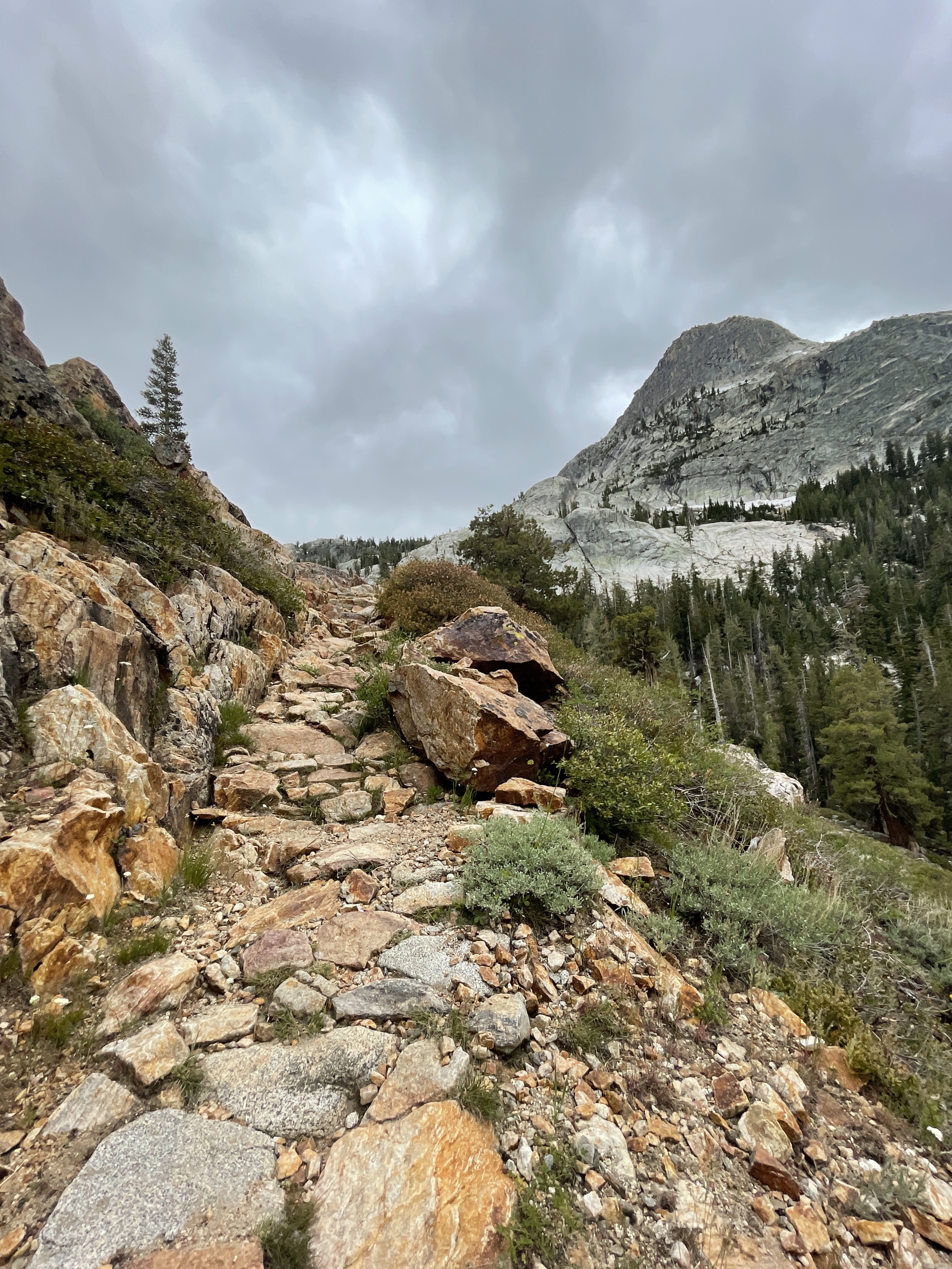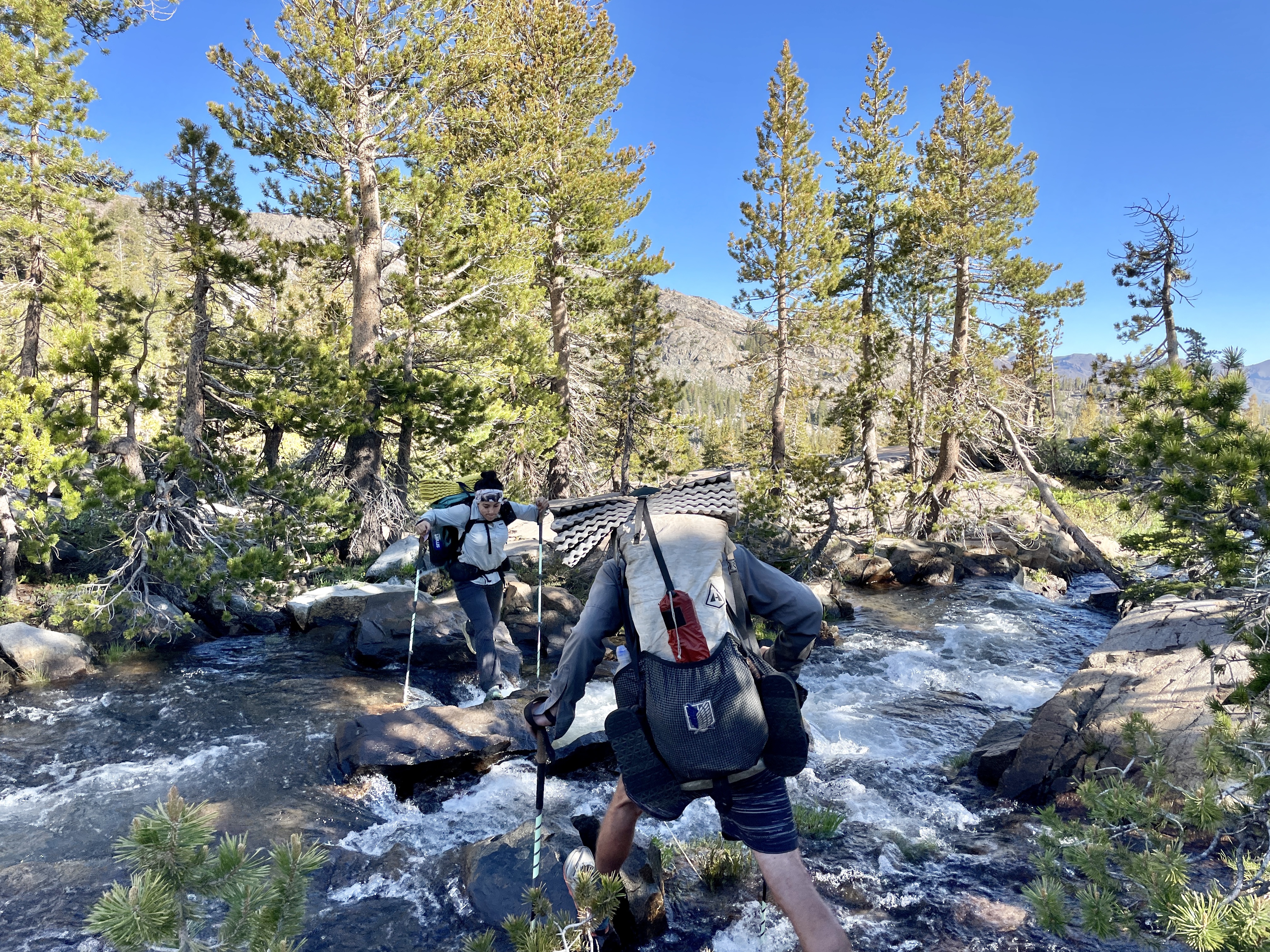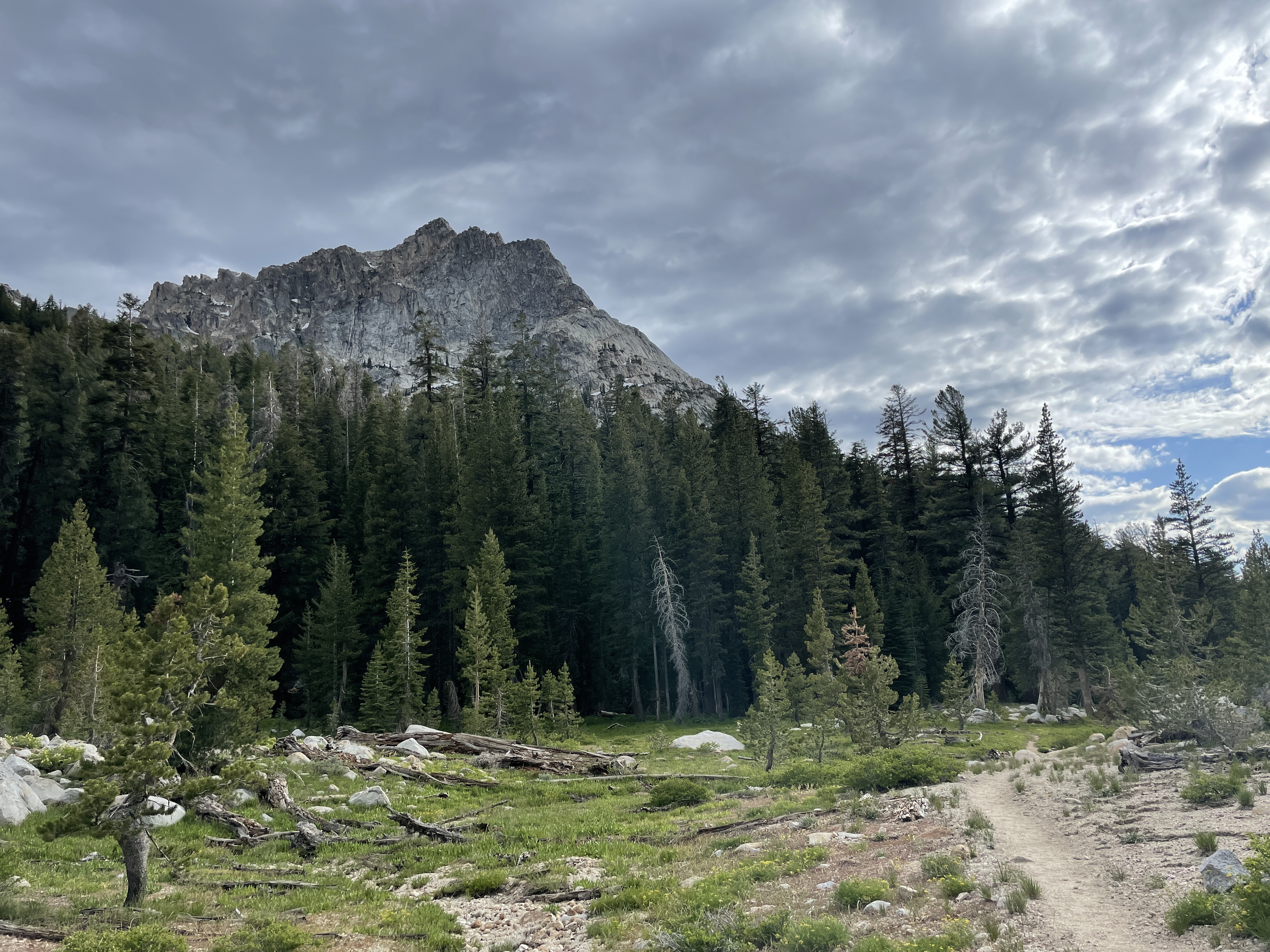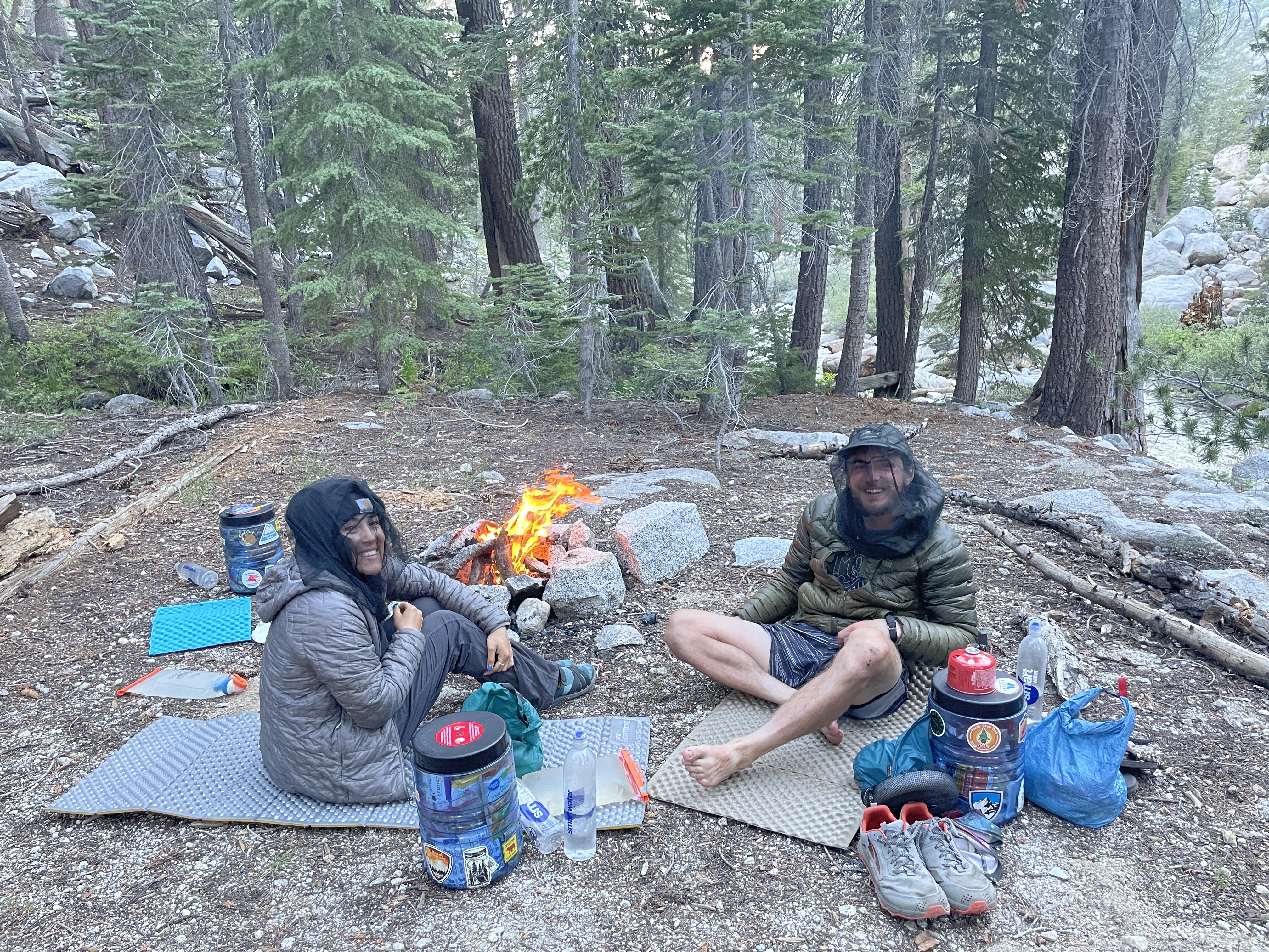 Joe (Fiber King), Diana (Wildfoot), and I hiked out of Tuolumne Meadows into a beautiful Yosemite landscape: granite domes and walls, lush meadows, forests, and flowing rivers. Accidentally omitted from the last blog because my selective memory blocks out horrible things so that I can sleep at night: MOSQUITOS. They are alive, they are thriving, and they are all converging on the PCT. Towards the middle/end of the High Sierra is when the mosquitos launched their first coordinated attack at keeping hikers moving by making any sort of sitting break a living hell. One time I hiked/ran carrying my full 2 liter water bladder in my hand for half of a mile because I literally couldn’t stop to filter water or even put it in my backpack because the mosquitos were so vicious. We built our first (and most likely, only) campfire during this section to keep the mosquitos at bay while we ate dinner. We were within 10 feet of a creek, had full water bladders next to us, and were located in a clearing, so I felt safe enough making a small fire in a fire ring. And best of all, it kept the mosquitos at bay. Hikers: 1, Mosquitos: ~5000. I’ll take it. One of the best quotes of the day was “Should I just drink my mac n cheese water so I don’t have to get up and drain it?” -Diana. It’s a thought that we’ve all had.