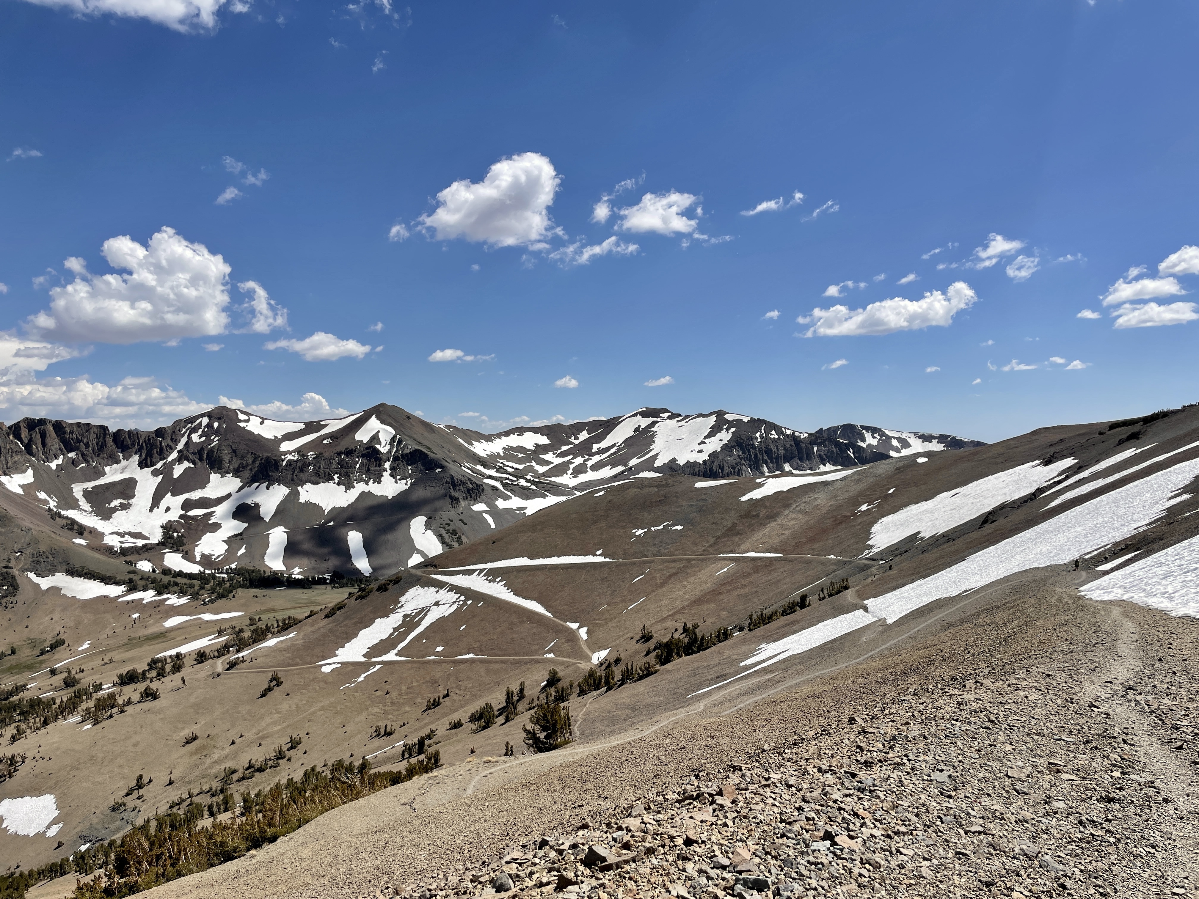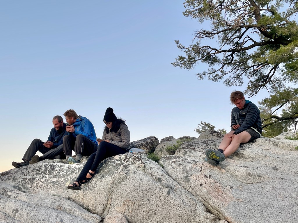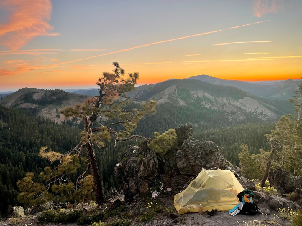In this section we had to climb some more steep and rocky passes, including Benson Pass and Seavey Pass. The day we hit 1,000 miles we had my FAVORITE camp spot ever: up on a ridge before Sonora Pass. We narrowly missed a thunderstorm, and Joe and I scrambled up a nearby rocky peak for the sunset and best views of the whole trip. The quote of the day was “I can’t believe the one day we get into camp early you guys want to hike more” -Diana. It felt amazing to look in the distance and see the High Sierra we had just spent weeks hiking through and reflect on how far we’ve come. The next day we would officially exit the Sierra (or at least what the PCT determines is the Sierra, technically it continues until Tahoe). It was my favorite night on trail so far!