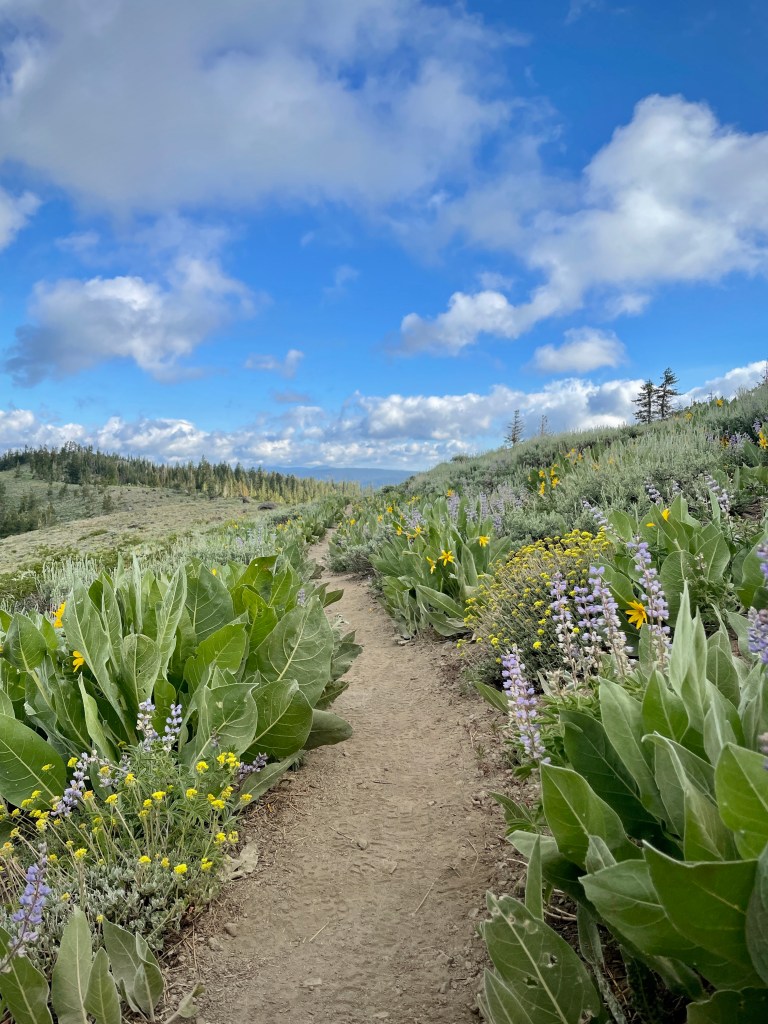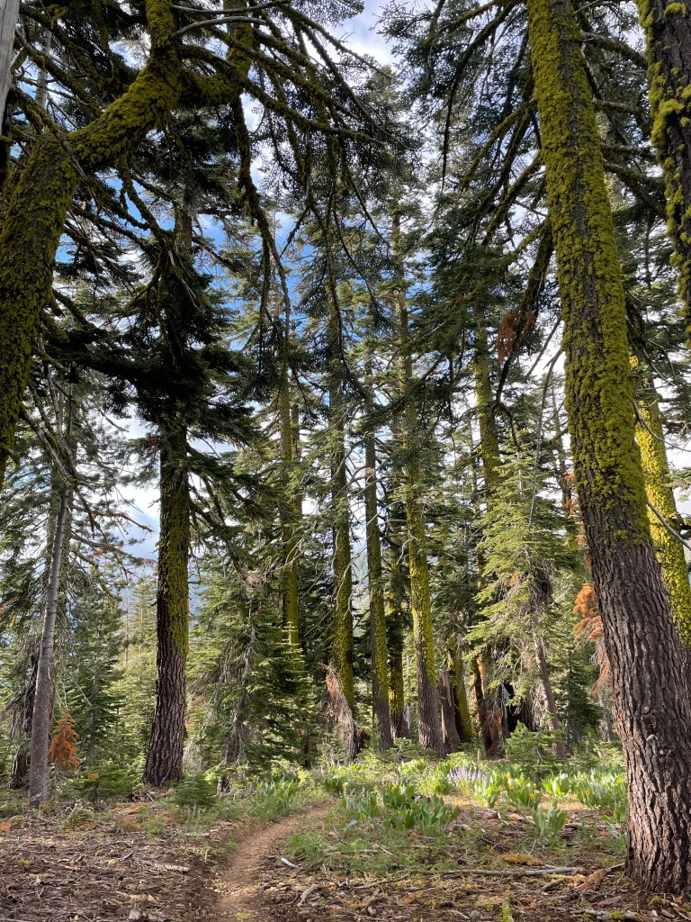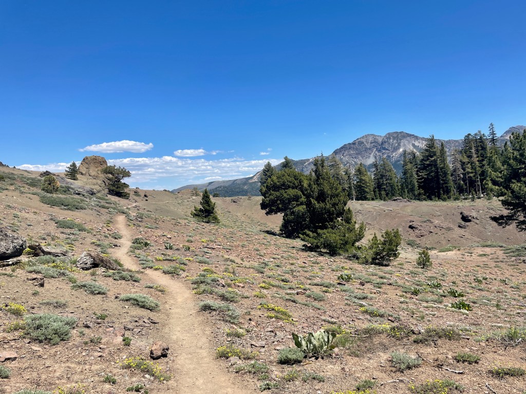 I officially hit the first burn zone on trail, from the Dixie Fire, and much warmer NorCal temps. This section did bring tremendous fields of wildflowers: silvery lupine, woolly mule’s ears, and wavyleaf paintbrushes. It’s cool to get to hike at this time of year to experience all of the wildflowers! The lupine is one flower that I have noticed in all 3 sections of trail so far (desert, sierra, and norcal) which is pretty neat!