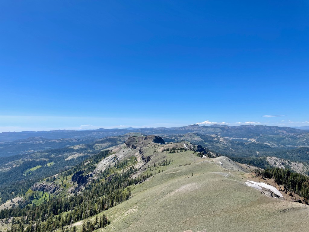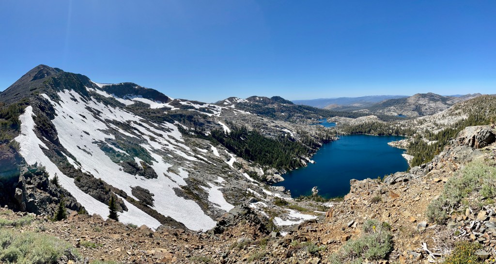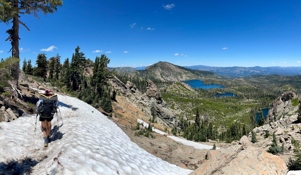 Starting the trail again from Echo Lake we had some beautiful scenery as we followed the Tahoe Rim Trail. We swam in Lake Aloha, hiked over 9,000 feet for our last time on the PCT (Dick’s Pass), encountered some of our last snow, and hiked through three Tahoe ski resorts in this section. I discovered a 2 pound rock that I had accidentally rolled up in my tent; all day my pack had felt heavier than usual! We got lucky finding camp sites higher up that gave us views of Lake Tahoe and a break from the mosquitos. On Day 96, we got passed by a hiker who was on her way to get a free 40oz beer for PCT hikers from Donnor Ski Ranch, so naturally we decided to push our biggest miles yet (24 miles) to get that too. Talk about motivation!